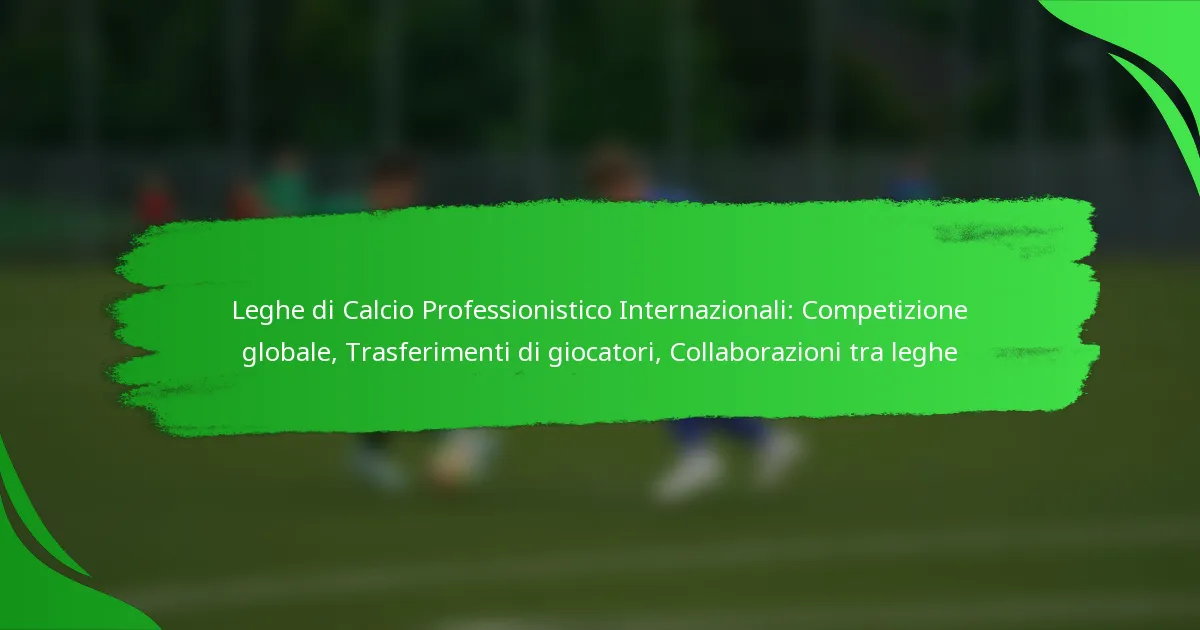 Le leghe professionistiche di calcio internazionali sono competizioni organizzate che presentano club di vari paesi, consentendo la competizione transfrontaliera e i trasferimenti di giocatori. Queste leghe sono strutturate per promuovere l’equilibrio competitivo, il coinvolgimento dei tifosi e la sostenibilità finanziaria.
